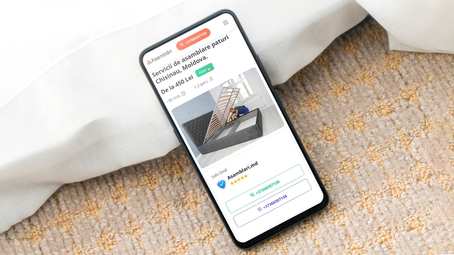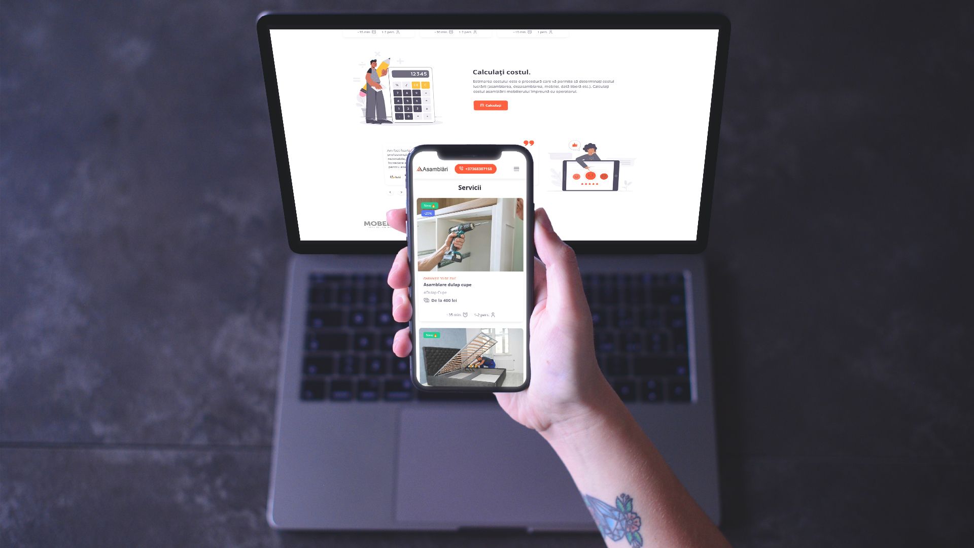 Prezentarea detaliată a serviciilor oferite, inclusiv tipurile de mobilier asamblate și metodele de contact pentru programări.